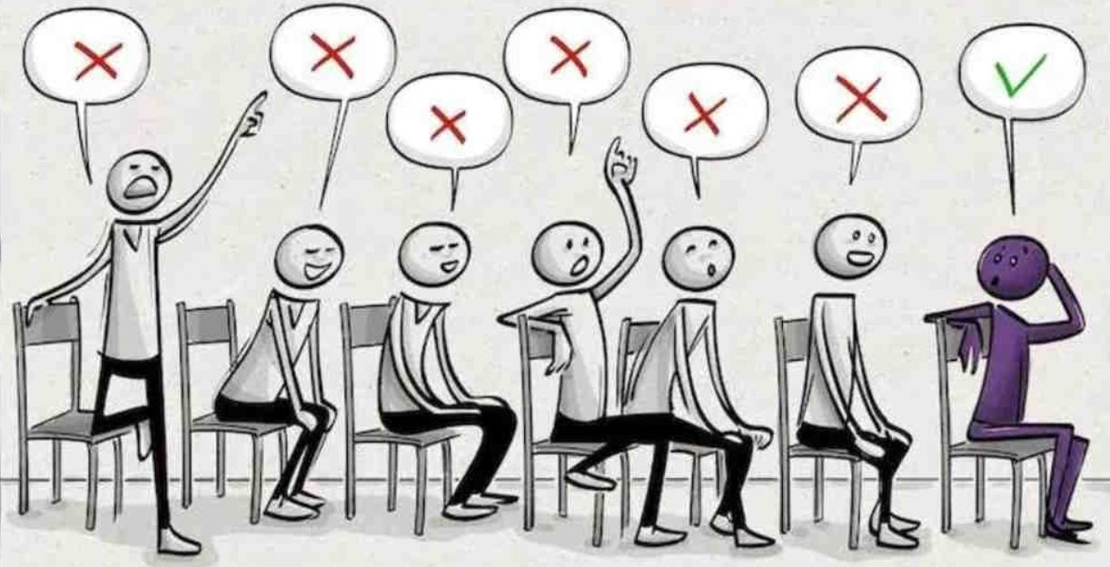 Vậy nên, đến cả người lớn tham gia thí nghiệm còn dao động, thì khi học sinh nhỏ tuổi hơn của chúng ta trả lời câu hỏi “giống những bạn đi trước”, có đôi khi đó là vì các em cảm thấy an toàn khi câu trả lời của mình cũng giống như các bạn. Hoặc các em cảm thấy câu trả lời của cả những học sinh được xem là giỏi hơn, nhanh hơn trong lớp “uy tín” hơn của bản thân, nên cứ làm sao cho mình giống họ thì sẽ an toàn.